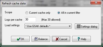 Updating GSAK with the API GSAK now utilizes an API to call data directory from the Geocaching.com website (for assistance in setting up the API with the proper credentials, head over the the GSAK site and ask around their forums). Using the Last GPX Update method to the left, you can identify the caches that haven't been updated in your GSAK database. Once you have the caches marked, you can filter to just those caches that didn't update. Using the API, you can update only those caches and bring in up to 30 logs per cache to check on the status of these potentially archived caches. First, make sure you have the filter set in GSAK to only display the caches that are potentially archived. If your database is quite large and you try to update all of the caches, you'll use your maximum number of cache retrievals per day (6000). Once the filter is set correctly, Then click "Geocaching.com Access" and "Refresh Cache Data". Make sure you select "All Caches in Filter" and "30 logs" which is the maximum. Then click "OK"This will make an API call to the Geocaching.com database and pull down information - even from archived caches - and update the GSAK database. It will bring in 30 logs per cache for the filtered caches, and update the status to archived if appropriate. I personally use this method to double check that I'm getting all of the caches updated and use this before the step of deleting all of the user ticked caches in the method to the left. | |||||